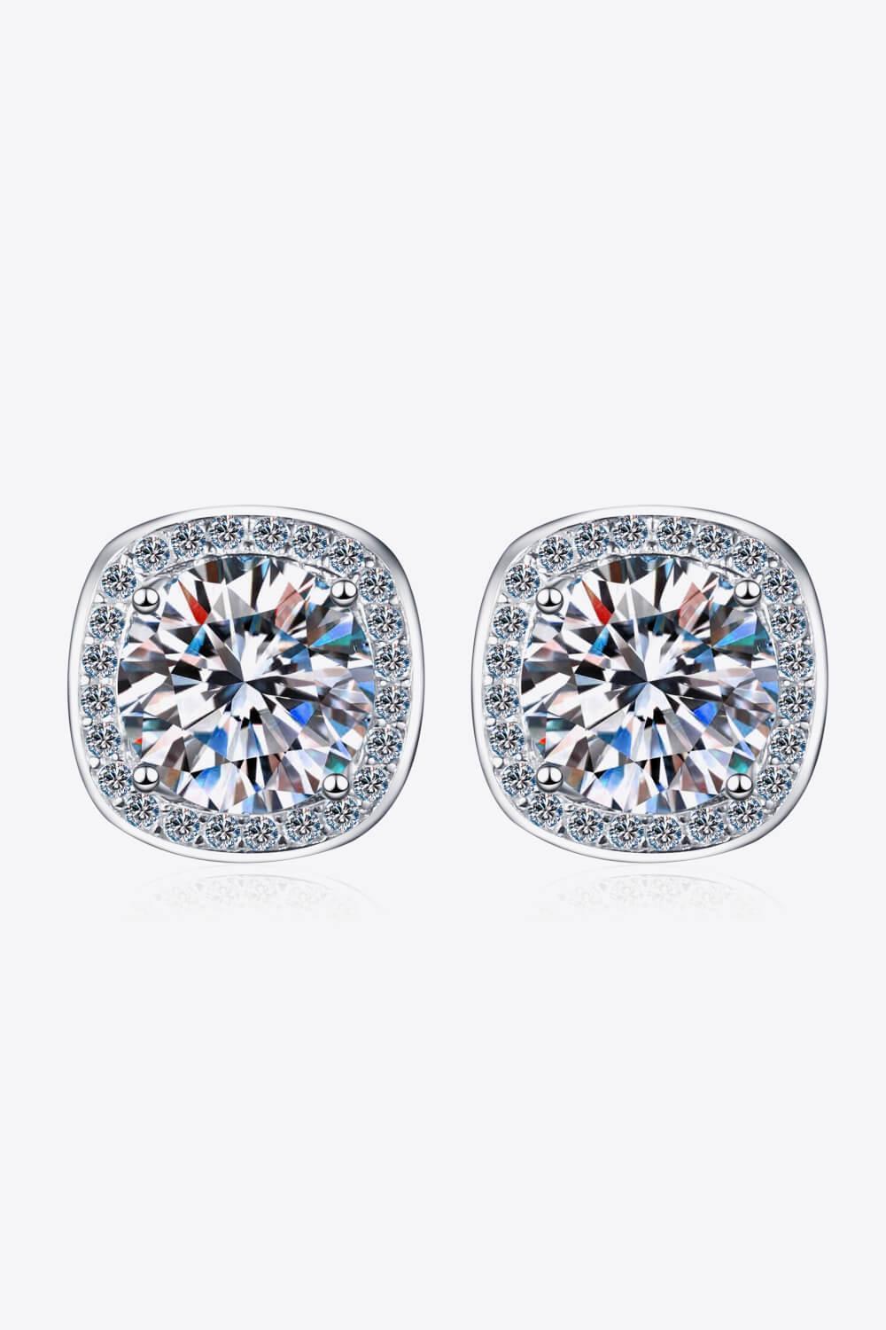 Encrusted Cushion Cut 1 Carat Moissanite Stud Earrings